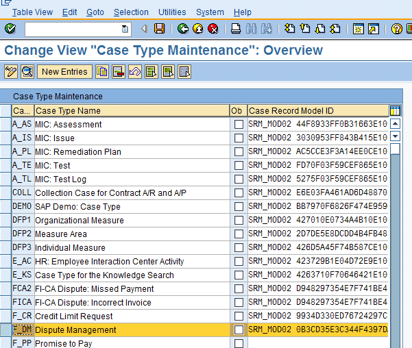 Step 1. Define the case type. Case type is a central property of the dispute management component as it groups all the customization of dispute management. To create the case type, follow IMG menu path Finance Supply Chain Management > Dispute Management > Dispute Case Processing > Case Type > Define Case Type (Figure 5). F_DM is the default case type delivered by SAP. Select the F_DM case type and click the copy icon