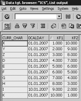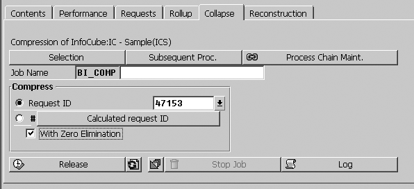 Next, compress InfoCube ICS with zero elimination (Figure 9). Select the ICS InfoCube in the Modeling window of Administrator Workbench. Right-click and choose Manage. Select the Collapse tab in the InfoCube’s Manage screen to get to the Figure 9 screen. Select the With Zero Elimination check box and click on the Release button to run the compress. Usually, BW suggests the last available Request ID automatically, but you can fill this field manually. After the compress job finishes, the ICS InfoCube content appears as shown in Figure 10.