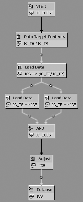 Step 4. Reload the substituted new data without data transformation. Generate an export DataSource for the IC_TS InfoCube. Create update rules from InfoCube IC_TS to InfoCube ICS with automatically proposed mapping. Lastly, load all data to InfoCube ICS (Figure 7). As a result of the InfoPackages from Figure 6 and 7 executing, the ICS InfoCube looks as Figure 8 shows.