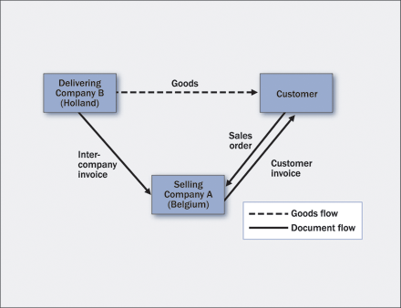 The cause turned out to be a combination of incorrect use of profit centers for its triangular sales orders combined with the standard SAP settings. A triangular sales order for this company is a sales order registered in Company A to be delivered by Company B. Figure 1 shows why this is called a triangular sales order. In triangular sales orders, the delivering and selling company may reside in one country. The country names have been added to the figure to illustrate the example used in this article.