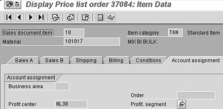 In the sales order item the profit center was originally NL30 (Figure 5). This original value has been overwritten by using profit center substitution for sales orders within the customizing settings for profit center accounting.