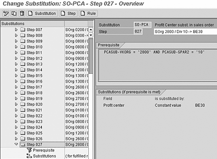 - Set up the profit center substitution rules for sales orders. When setting up the rules you have to consider the way you want to use the substitution. Figure 9 shows how you can activate the substitution.