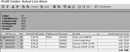 If everything had been set up correctly, the revenue from the customer invoice and the costs from the inter-company invoice would have been booked on a profit center belonging to the Company A (Belgium). The revenue of the inter-company invoice and the costs of the goods would have been booked on a profit center belonging to Company B (Holland). However, because the profit center master data was set up incorrectly, all costs and revenues were reported either in Company A or Company B.