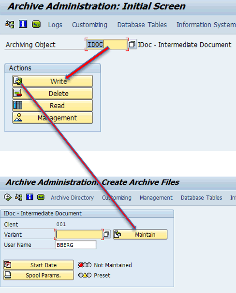 In addition the source system sends an IDoc with all the requested data using the message type (RSSEND). Therefore, these tables can grow fast over time. You should therefore consider archiving IDocs older than three to six months. You can do this by executing transaction code SARA and then clicking the Write button, as shown in Figure 13.