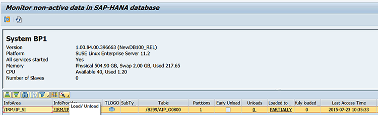 Unload nonactive data from SAP HANA memory with RSHDBMON