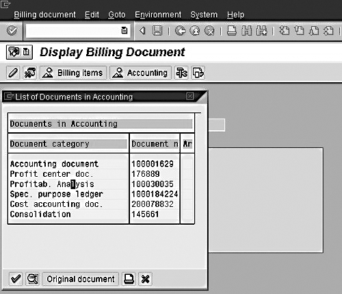 Next, move to Accounting from SD by clicking on the Accounting document display line found in the Document Flow details in Figure 6. Then select the Display document button, which will bring up the Accounting document display window in Figure 7.