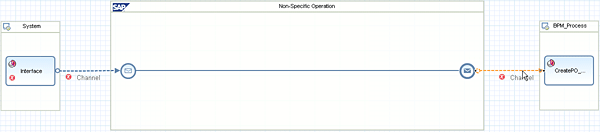 Now assign the inbound interface to the start and intermediate message event of a BPM model. Note that this is not always the case — you can assign it to the start or intermediate message event of your BPM model in other scenarios. I assume that you have imported the interface from the ESR into the process modeling environment already. The procedure for assigning the interface is identical whether it is a start or an intermediate event. I use the intermediate message event (