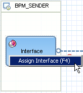 Once you have defined the sending interface for the business component, it can be assigned in the PI Designer to the sender system (e.g., BPM_SENDER). Right-click the Interface rectangle within the BPM_SENDER box and choose Assign Interface from the context menu (Figure 22).