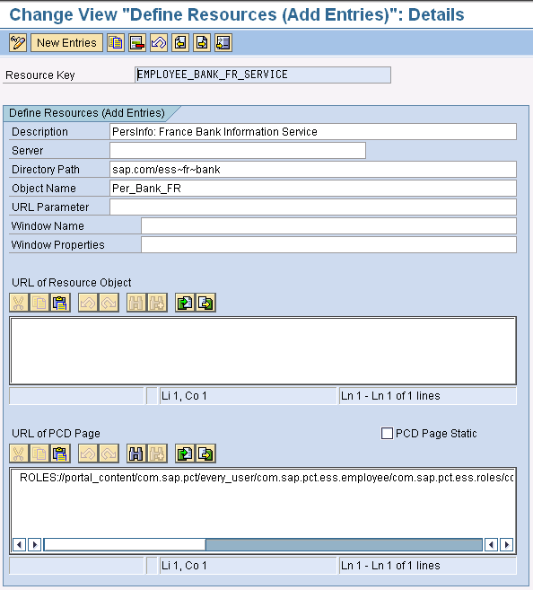 Follow IMG menu path Personnel Management > Employee Self-Service > General Settings > Homepage for Self-Services > Resources > Define Resources. In this case, the France bank service is available and pre-configured as a resource. The Directory Path and the Object Name are important criteria that show which iView is being used (Figure 1).