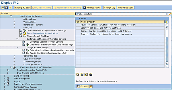 In this step you assign a screen structure to infotype sessions (Figure 17). Before performing the step, you need to identify the country-specific application that is best suited to be copied and adapted as new country-specific application.