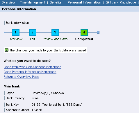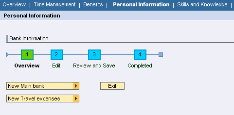 SAP NetWeaver Portal Personal Information subscreen (bank information)