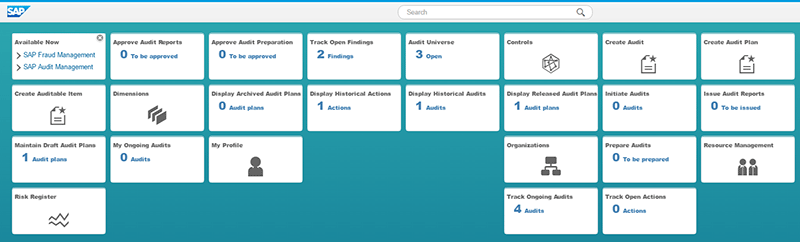 To access an application, click a tile. The selection of tiles available to a user is driven by the corresponding authorization assigned to a user in the back end. For example, the tiles available to an audit manager most likely differ from those available to an auditor. In the remaining part of the article, I do not show this launchpad again. When I refer to accessing the SAP Audit Management user interface (UI) and choosing a tile, it is the tile in this launchpad to which I am referring.