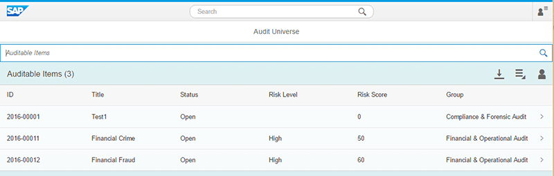 The audit universe houses all auditable items in an organization. In the audit universe, you can create, edit, and release auditable items. You can assign risks and dimensions to auditable items and upload attachments. The audit universe provides the environment to display other auditable item details such as assigned audit history, status, and administration data. Navigate back to the home page of the SAP Audit Management UI and choose the Audit Universe tile to access the library of auditable items in an organization as shown in Figure 4.