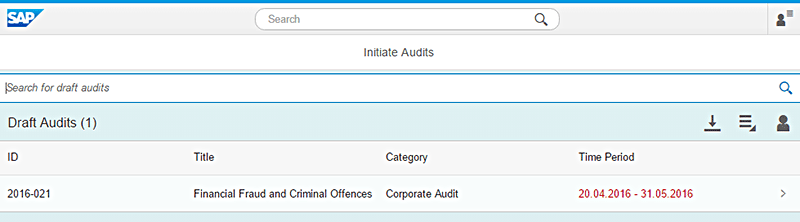 After an audit has been successfully created, it exists in the draft status in the Initiate Audit tile. To display audits in draft status, access the SAP Audit Management home screen as the audit manager. Choose the Initiate Audits tile and Figure 24 appears.
