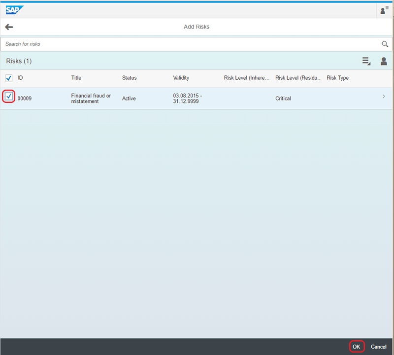 Choose the add (+) button. In the screen that displays, select a risk you intend to assign to the auditable item as shown in Figure 7.