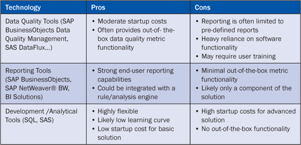 Although customized reports are a good way to please many groups, McClain notes the impracticality of trying measure everything. Time and money are wasted calculating and monitoring metrics that don’t matter much. McClain recently worked on an implementation in which the company had previously used a particular data quality metric. The implementation, however, made the metric obsolete because of changes to how the data was captured. As such, the rationale behind the data quality metrics must be reviewed periodically in order to keep the metrics relevant and timely, he says.