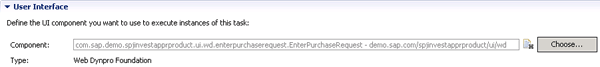 Right-click the first human activity (Enter Purchase Request) and select Properties from the context menu. In the Properties tab (beneath your process diagram) click the Task button in the button bar on the left to open the task-related properties. Within those properties click the Task link to open the task editor. The Overview tab (at the bottom of the task editor’s screen) contains the associated Web Dynpro user interface (UI), which you can find in the User Interface section of the screen (Figure 2). The Component field points to the Web Dynpro component you have assigned to the Enter Purchase Request task.