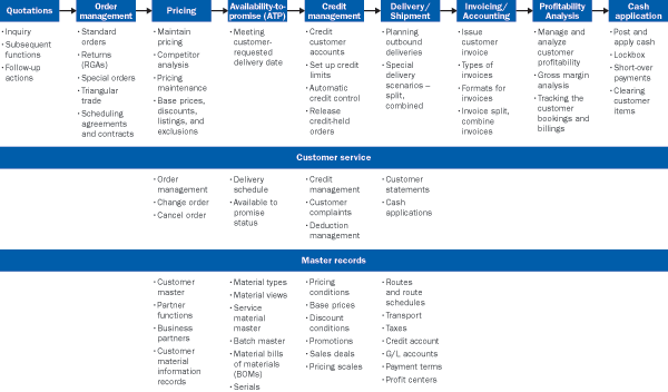 For each key process, you can identify the subprocesses and functions. For example, for the quotations process, you can list the subprocesses of inquiry, quotations, subsequent follow-up actions, and more. Using OTC as an example, you can see some sample baseline processes as shown in Figure 2. There would be similar lists of processes for other initiatives, such as purchase-to-pay.