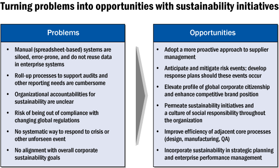 Sustainability initiatives have been around for decades in one form or another. Your company may have years of experience demonstrating compliance with a particular environmental or economic regulation, for example. However, pressures from the global recession and increased attention on good corporate citizenship have forced companies to align sustainability initiatives more closely with their overall mission.