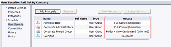 - To deny or remove security for principals (i.e., users or groups) that have already been added, return to the User Security screen, highlight the principal to be removed, and click the Remove button (Figure 6).