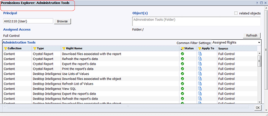 - To see the rights in effect for the principal on an object or folder, click the View Security button. The Permissions Explorer launches and displays a list of rights for the selected principal (Figure 7).