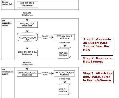Note that the data in the PSA is an exact copy of the data from the original source system with no manipulation by transfer rules or update rules. Because this is untouched data, you must manually recreate any custom transfer rules for the data flowing into the BW development system.