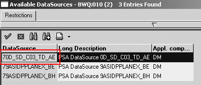 Step 1. Generate an Export DataSource from the PSA. In your QA system, open Administrator Workbench and go to the PSA tab. Right-click on the PSA for 0SD_C03_TD_AE and choose Generate Export DataSource.