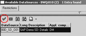 Select the source system that supplies the data. In my example it’s my BW QA system (bwq:010 as shown in Figure 3), but in your scenario it is probably your BW production system. Select the one available DataSource on the source system that has an acceptable match to the InfoSource (Figure 9). The system asks for confirmation, so click on the Yes button.