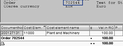 CO line items posted for internal order 702544
