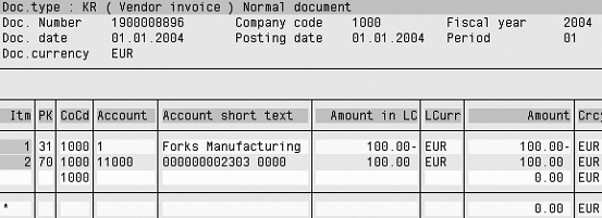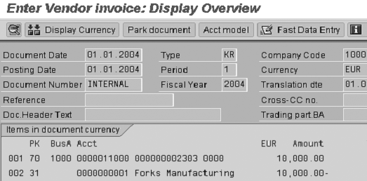 Step 5. Post the asset document to the asset (2303 in this example) with more than the budget amount. In this example, the actual amount of €10,000 exceeds the budget of €1,000 (Figure 12). Also notice that an error message appears if the actual posting exceeds the budget (Figure 13). Thus, this method provides the benefits of direct capitalization and budget control with a few simple steps.