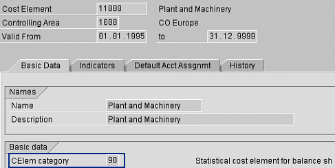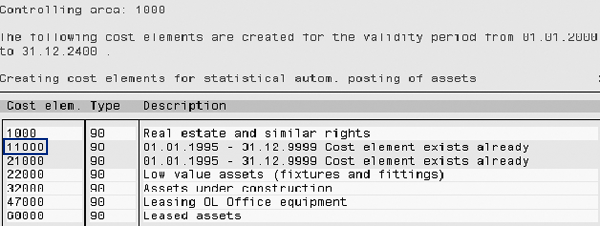 The cost elements shown in Figure 2 are generated for all APC asset reconciliation accounts defined in depreciation area 01 (book depreciation area). You create cost elements of category 90 from an IMG screen for better control. Due to this, cost element type 90 is not shown as a possible entry while creating cost elements from transaction KA01. After creating these cost elements, you cannot change the category in the cost element master data. Figure 3 displays the cost element 11000 with category 90. After you create these cost elements in the development client, you can transport them to other clients using transaction OKE6.
