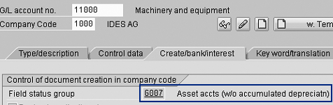 Field status group for the G/L master data