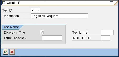 When you have confirmed the object, you can scan or browse from the entire catalog of text types available. Select a text type from the list or create a new one. In my example, I am creating a new text type. Characterize the text type accordingly and confirm (Figure 1). For this basic process, I only need to enter the Text ID, Description, and the Display in Title check box for most common purposes. Save and exit the transaction.