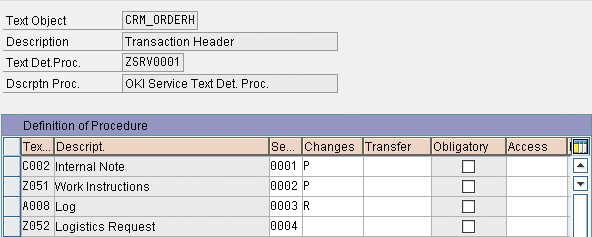 Step 1. Determine whether the existing text determination procedure contains a text type that suits your needs. This determination is made based on the transaction type you intend to use. For example, I used the Service Ticket transaction in the Interaction Center (IC) WebClient. This transaction type uses the standard text determination procedure SRV00001.