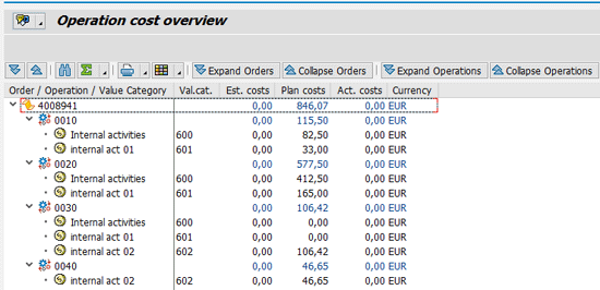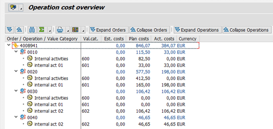 This results in the report layout shown in Figure 15, in which you see the line items by operation in the order report, provide a degree of transparency in order reporting that many users have searched for in vain in the past.