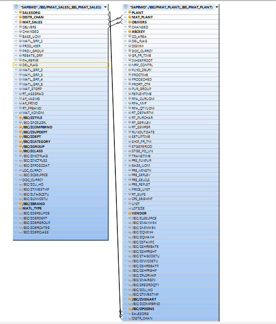 Use the following join conditions between PMAT_SALES and PMAT_PLANT (Figure 12).