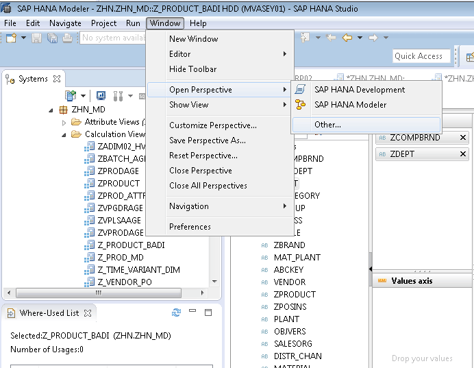 Create a Z_PRODUCT_BADI SAP HANA calculation view