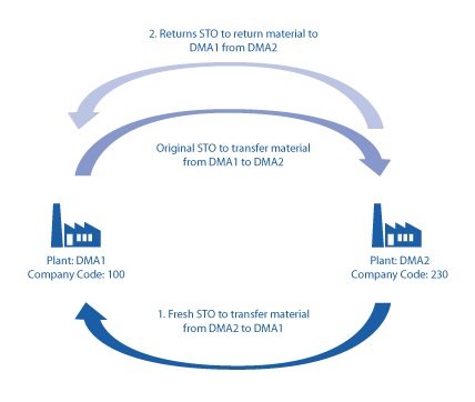 In the case of intercompany returns, global tax and trade accountants require the original billing and vendor invoice, respectively booked in the sending and receiving legal entities, to be reversed. They want to ensure that there is no double-booking of revenue and consequent tax as the value-added material (e.g., HALB or FERT) underwent a circular movement across legal entities. However, you can use a fresh STO for non-value-added material (e.g., ROH) because you transfer these materials at a transfer price equal to the cost of the material. Thus, even though there is double-booking of revenue in the circular movement, there is no profit and consequently no duplication of tax.