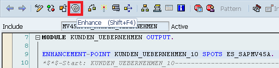 Step 2. Switch to enhancement mode. Click the enhance icon in the toolbar (Figure 41). You can see the enhancement point KUNDEN_UEBERNEHMEN_10 (Figure 42).