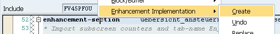 Step 3. Right-click the enhancement point line in the code and follow menu path Enhancement Implementation > Create in the context menu (Figure 53).