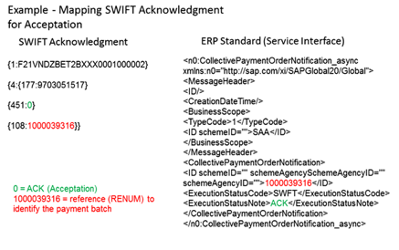 Incoming messages from a bank or payment networks can be displayed in the Batch and Payment monitor using a Simple Object Access Protocol (SOAP) call of the SAP service interface CollectivePaymentOrderNotification_In. This service can only process specific XML messages an International Organization for Standards (ISO)20022). See the example in Figure 9.