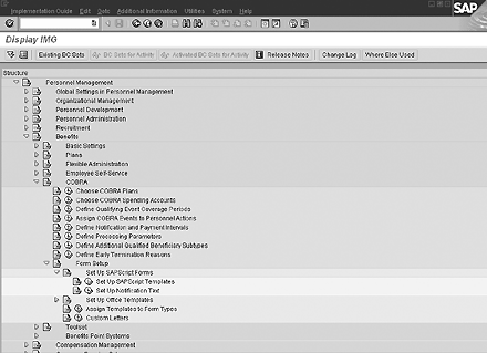 If you want to use the standard delivered COBRA forms, there is only one step in the forms setup section to configure. This is the Assign Templates to Form Types step. Table 2 shows the delivered SAPscript template names that should be assigned to each form type.