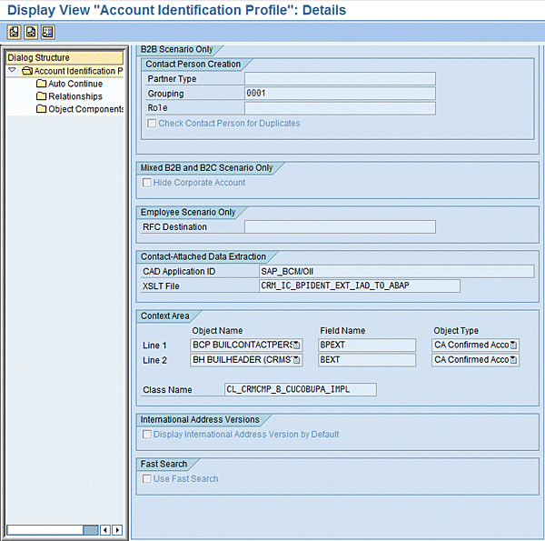 Finally, in SAP CRM it is necessary configure the account identification profile associated with the business role used by interaction center agents to extract the data sent in the ItemAttachedData tag in XML using an XSL transformation and perform the automatic account identification.