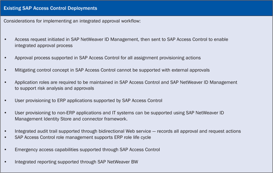 Learn about options for combining SAP Access Control and SAP NetWeaver Identity Management to support automation of identity and access processes and compliance requirements within your organization. Key Concept An integrated software solution that combines SAP NetWeaver Identity Management and SAP Access Control enables you to automate access governance and identity management capabilities to support…