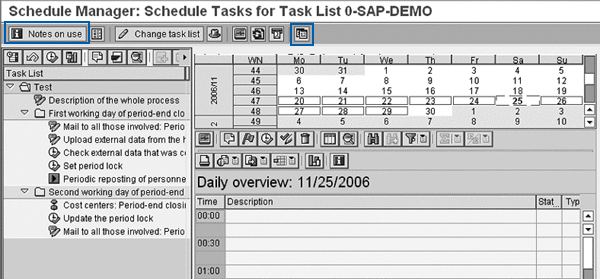 SAP rolled out Schedule Manager as a comprehensive centralized tool for the first time in the R/3 4.6 release. It is almost synonymous with period-end closing activities, and provides functions such as: