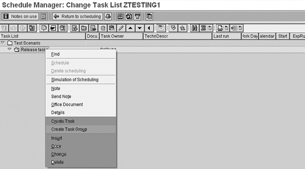 A task list, like other Schedule Manager objects, is a transportable object. In other words, when you save, the system prompts you for a change request, commonly known as a transport. Check with your Basis administrator if you do not have authorization before creating your own change request. If you do, select an existing one or create a new one.