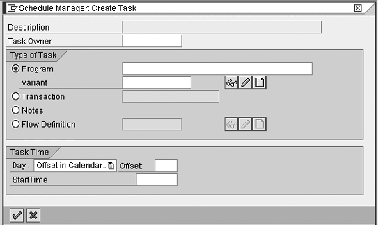 Let’s take a very simple example: Say you use Schedule Manager for period-end closing activities and you realize that you need to add a step for opening and closing the posting periods in FI (transaction OB52). In this case, you have to insert this new task into your task list. Or, say you use Schedule Manager for scheduling automatic payment proposals and payment runs in Accounts Payable. You might have a requirement that asks for a certain employee to approve the payment proposal for the system to execute the payment run. You have to change the existing flow definition to add a user decision step that allows the employee either to approve or reject the payment proposal.