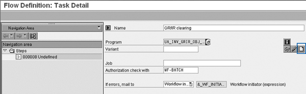 Double-click on the undefined step for a new step and you then can choose to insert a program, user decision, fork, or another flow definition. While a description of each of these categories is beyond the scope of this article, it is important to look into the use of a program in a flow definition because this is the element that you are likely to use most commonly. When you enter the technical name of the program or report, you must assign a variant. If one is not available, you can create one by clicking on the create icon in Figure 9.