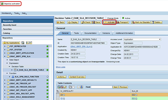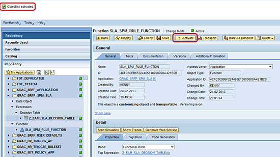 The SLA rule for EAM is a standard application in SAP Access Control 10.0. The application is defined and maintained within the BRFplus workbench. Basically, you need to check for the correct function ID in the BRFplus workbench. You can identify the correct function ID by accessing transaction BRFplus or BRFplus and navigating to the appropriate function of the application as shown in Figure 9.