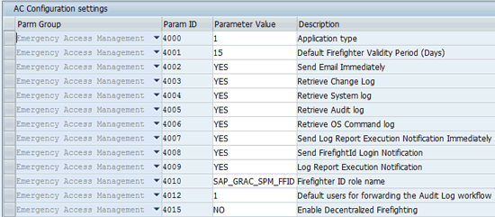 - 4009 (Log Report Execution Notification): This controls the sending of emails or workflow after firefighter data synchronization. The possible options are YESor NO.